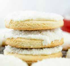 HEAT OVEN TO 400°F. CREAM TOGETHER SHORTENING, SUGAR, EGG AND VANILLA EXTRACT. SIFT TOGETHER FLOUR, SALT AND BAKING SODA. ADD MIXTURE TO WET INGREDIENTS, ALTERNATIVELY ADDING IN GREEK YOGURT. FLOUR SURFACE, AND ROLL OUT COOKIE DOUGH. USE TOP OF JAR OR BISCUIT CUTTER TO MAKE ROUND COOKIE SHAPES. BAKE 8 MINUTES. TRANSFER TO COOLING RACK IMMEDIATELY. IN MEDIUM BOWL, USING MIXER ON LOW, MIX POWDERED SUGAR, BUTTER, MILK AND COCONUT EXTRACT UNTIL THOROUGHLY COMBINED. BEAT ON HIGH UNTIL FROSTING IS SMOOTH AND FLUFFY. SPREAD FROSTING ON COOKIES. POUR SHREDDED COCONUT INTO SMALL BOWL. PRESS COOKIES, FROSTING SIDE DOWN, INTO SHREDDED COCONUT.
