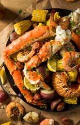 As far as fresh seafood goes, 2 J’s o ers a huge array of options, including Maine and spiny lobster tails, king crab, stone and soft-shell crab, conch, prawns and shrimp of multiple sizes,