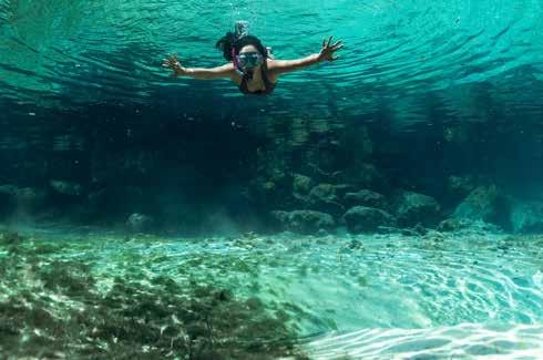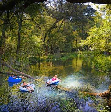 Tubing the Rainbow River is a mustdo if you live in Marion County. Tubing is not allowed within the headspring area, though, and tubers should enter the park at the tubing entrance located on SW 180th Avenue Road in Dunnellon. The park entrance fee is $2 per person. Once you park at the tubing entrance, visit the concessionaire to rent your tubes and receive shuttle service. Tube rentals are available for $20, seven days a week. The shuttle will take you two miles upstream, where you will enter the Rainbow River and oat back to your vehicle. The trip takes about two hours to complete. Rainbow Springs also o ers paddling opportunities, with canoe and kayak rentals available within the park. Snorkeling and swimming in the headspring is another favorite activity, with depths of 10-18 feet.