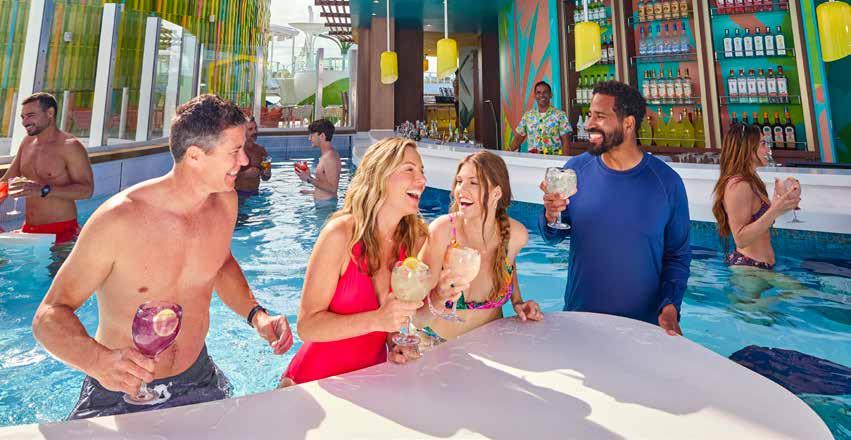 Icon of the Seas o ers seven-night vacations out of Miami, visiting both Eastern and Western Caribbean destinations, including stops in San Juan, St. Thomas, Roatan, Costa Maya and Cozumel, as well as Royal Caribbean’s private island, Perfect Day at CocoCay. Unique to Royal Caribbean’s newest ships is the idea of di erent neighborhoods within the ship—and Icon has eight separate spots, all with a unique draw. There are adrenaline-pumping thrills, unrivaled ways to chill, more than 40 ways to dine and drink, and cutting-edge entertainment across the cruise line’s four signature stages (air, ice, water and theater). And with 28 di erent ways to stay, including the new three-level Ultimate Family Townhouse, even the rooms are thoughtfully designed for every type of vacationer.
