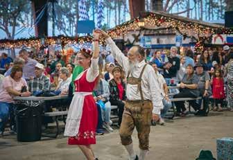 “Krampusnacht started in 2021,” she says. “Krampus comes from the Alpine regions of Germany and Austria. Similar to Elf on the Shelf but, in typical German fashion, Krampus is designed to scare you and make you behave the whole year. Our Krampusnacht culminates with a parade of Krampusse led by St. Nicholas. You will also want to make sure to see the Krampus Koal Holding contest and nd some traditional Gluhwein or specialty drinks and visit the market.”