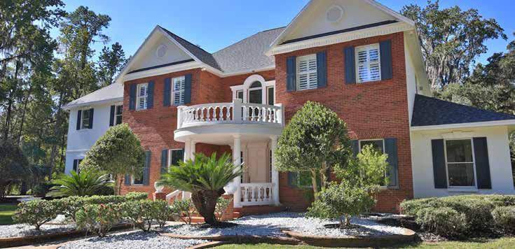 Surrounded by magni cent oak trees, this 3-BR/3-BA split-bedroom oor plan features an expansive living area, large dining room, and a separate sitting room complete with beautiful outdoor views. Center-aisle concrete block barn with 8 stalls is perfect for the equestrians.