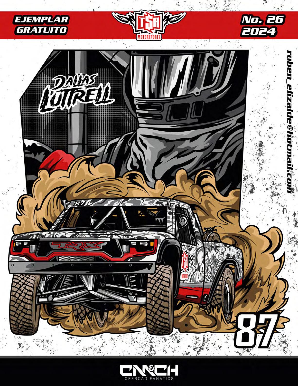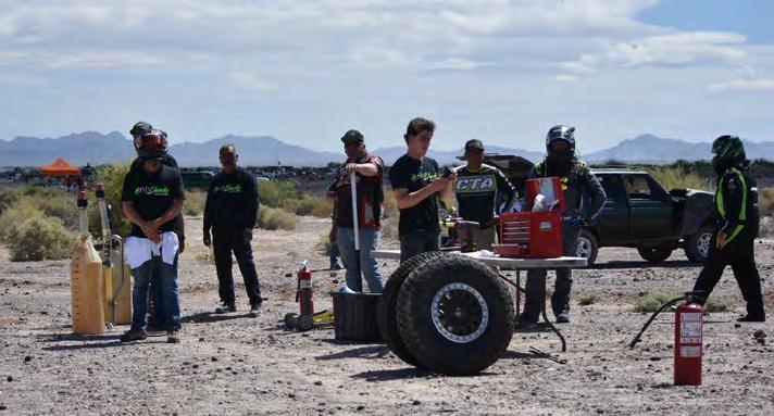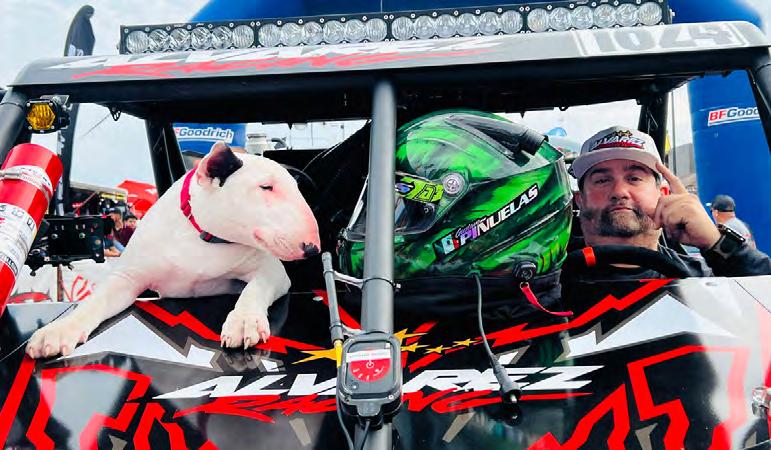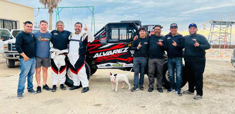 El día viernes entre nervios, alegrías, lo- gística y momentos únicos el Team Álvarez Racing y Piñuelas Racing cerraban el tema, la mañana del sábado ganándole al sol y otros en plena puesta se comenzaba a escuchar el encendido de camionetas, de gritos “nos vemos en la milla tal”, “venga ánimo”, “a darle con todo”... y el 1824 tripulado por Oscar Álvarez y Adrián Gue- rrero se iba a la arrancada a lo que sería su primer guerra competitiva en la máxima categoría de los Utvs, arrancaron en 3er lugar las primeras 15 millas llevaban un ritmo genial, la parte de las antenas toma- ron un camino mal y eso los hizo perder lugares, al salir el Team y chase trabajaron al doble para recuperar el tiempo y esas posiciones, cada pit fue brutalmente rápido, no había un mañana, sino un ahora y va- mos por ellos, Oscar y Adrián emprendieron la cacería y pudieron recuperar lugares y entregarle a Gustavo Piñuelas en la milla 160 un Utv entero y en el top 10, el pit de esa milla los recibió y lanzo rápidamente, Gustavo como Michel salieron a darlo todo el 1824 les daba la fuerza y el ataque. El cierre de las ultimas millas el Team pudo recuperase y pasar algunos pilotos, el camino no era nada amigable pero la ex- periencia del Team los sacaba de cualquier camino, Gustavo y Michel llegaban a la meta después de una ardua batalla en los caminos de San Felipe y llegar al arco de meta de Score International con un gran 8vo lugar de 23 participantes es grande porque vimos el potencial de los demás equipos, la forma que corren y atacan cada camino es de reconocer, tenemos mucho trabajo por delante, pero se va lograr. Los chase grandes y rápidos, Sánchez, Mau, Mike, Humberto, Daniel, Poncho, Wicho, Pajaro, Kevin, Sr Ricardo Malo, Malo Jr, Ruly y Balta, ellos son los héroes sin capa, pero son los que hacen fuerte a este Álvarez Racing Team con Piñuelas Racing y Oso Race Prep, nos vemos en la próxima team.