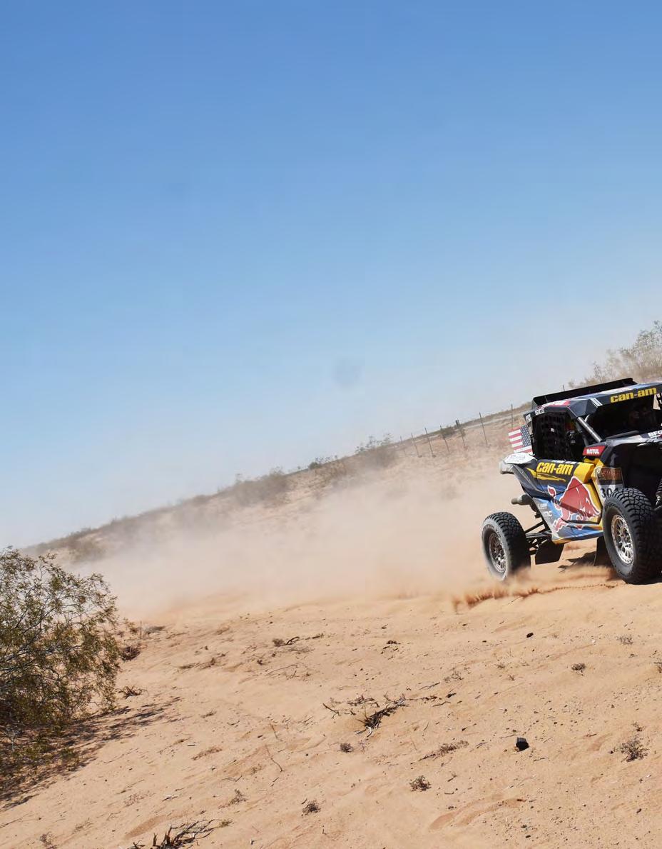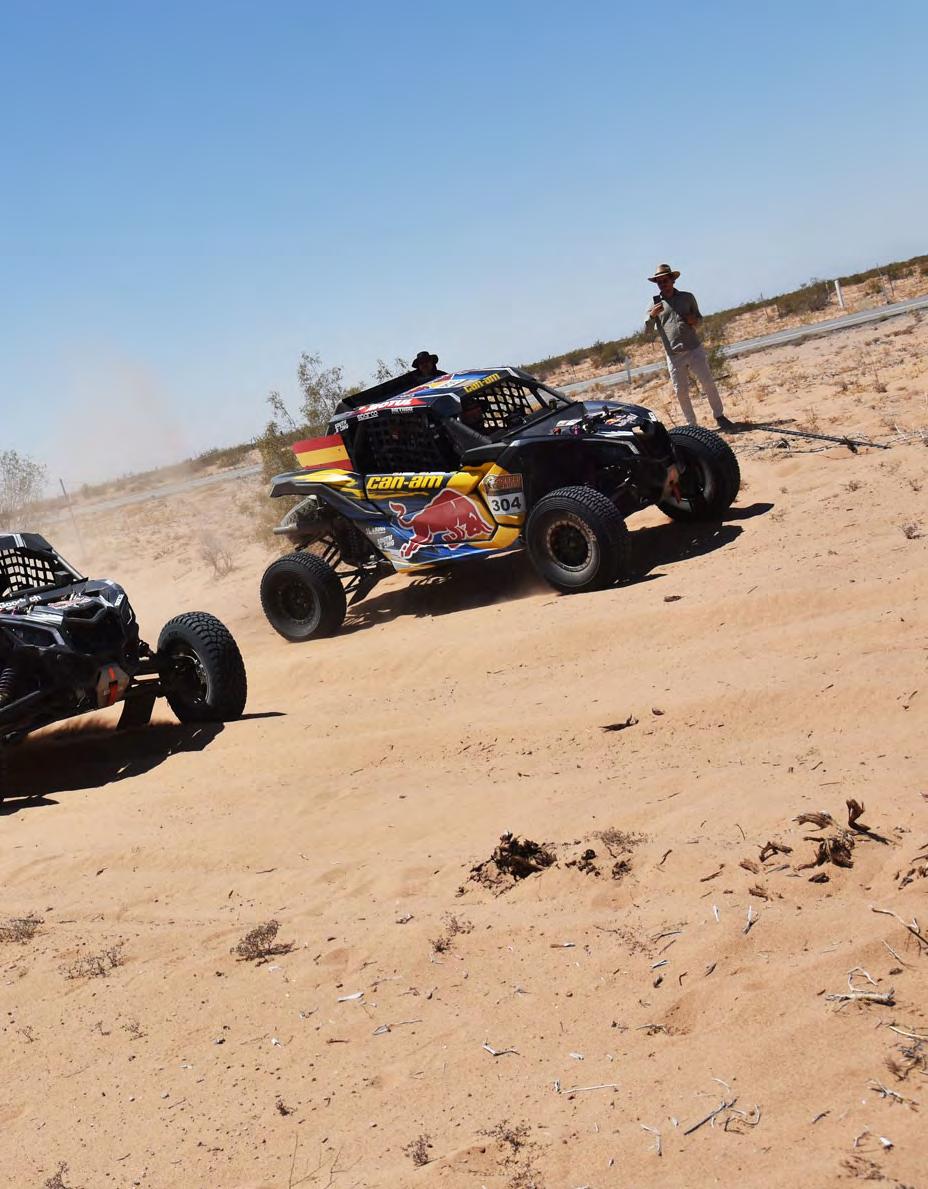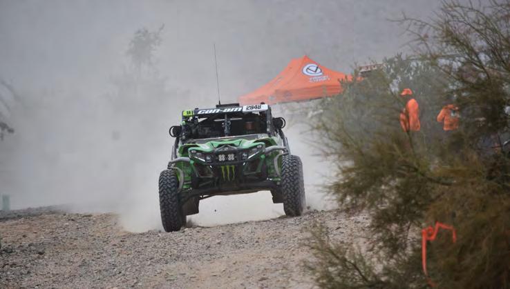 más con una de las listas de inscritos más singulares de todas las carreras, desde au- tos Clase 10 y UTV profesionales que lucha- ron al frente del campo hasta corredores todoterreno antiguos, vehículos militares e incluso vehículos eléctricos de producción. Cuando todo estuvo dicho y hecho, el co- rredor de UTV Pro Open Ronnie Anderson obtuvo la primera gran victoria general de su carrera en el desierto, superando al ganador de la Clase 10, Tyler Mills, por los máximos honores generales por solo 56 segundos después de 400 millas de carrera.