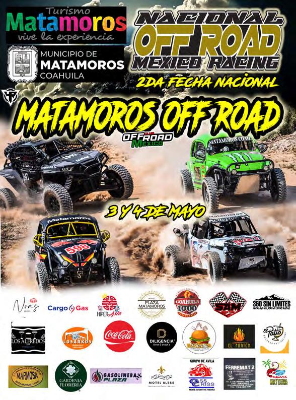 Coahuila, Mx (28 marzo 2024) – Des- pués de un gran inicio de año en Zacatecas, ahora le toca para inicios de mayo la 2da fecha del Nacional Off Road México a Coahuila con epicen- tro en el extremo y desafiante terreno off road de Matamoros, promotora que se caracteriza por darnos terrenos va- riantes, entre rapidos, curvas y paisajes semi desérticos, además son casuales los talcales en esta fecha.