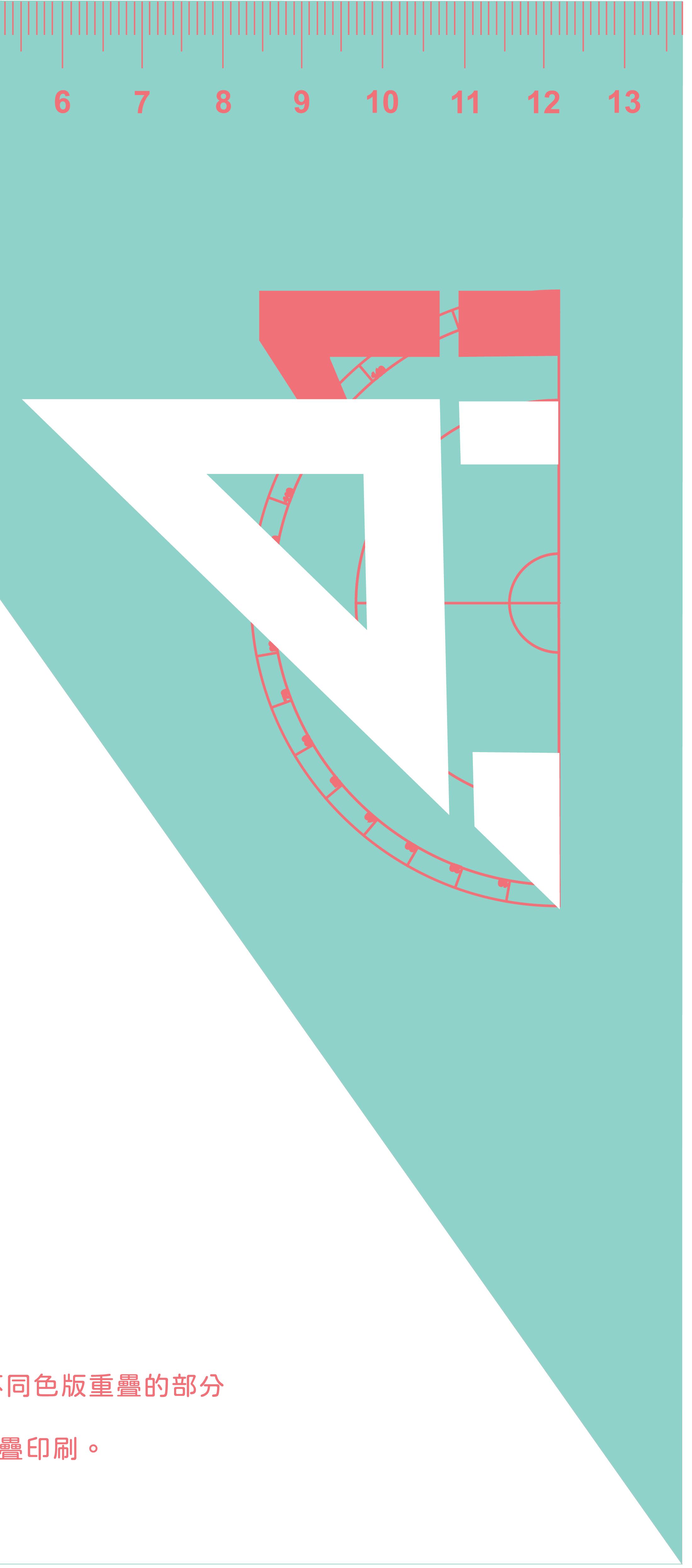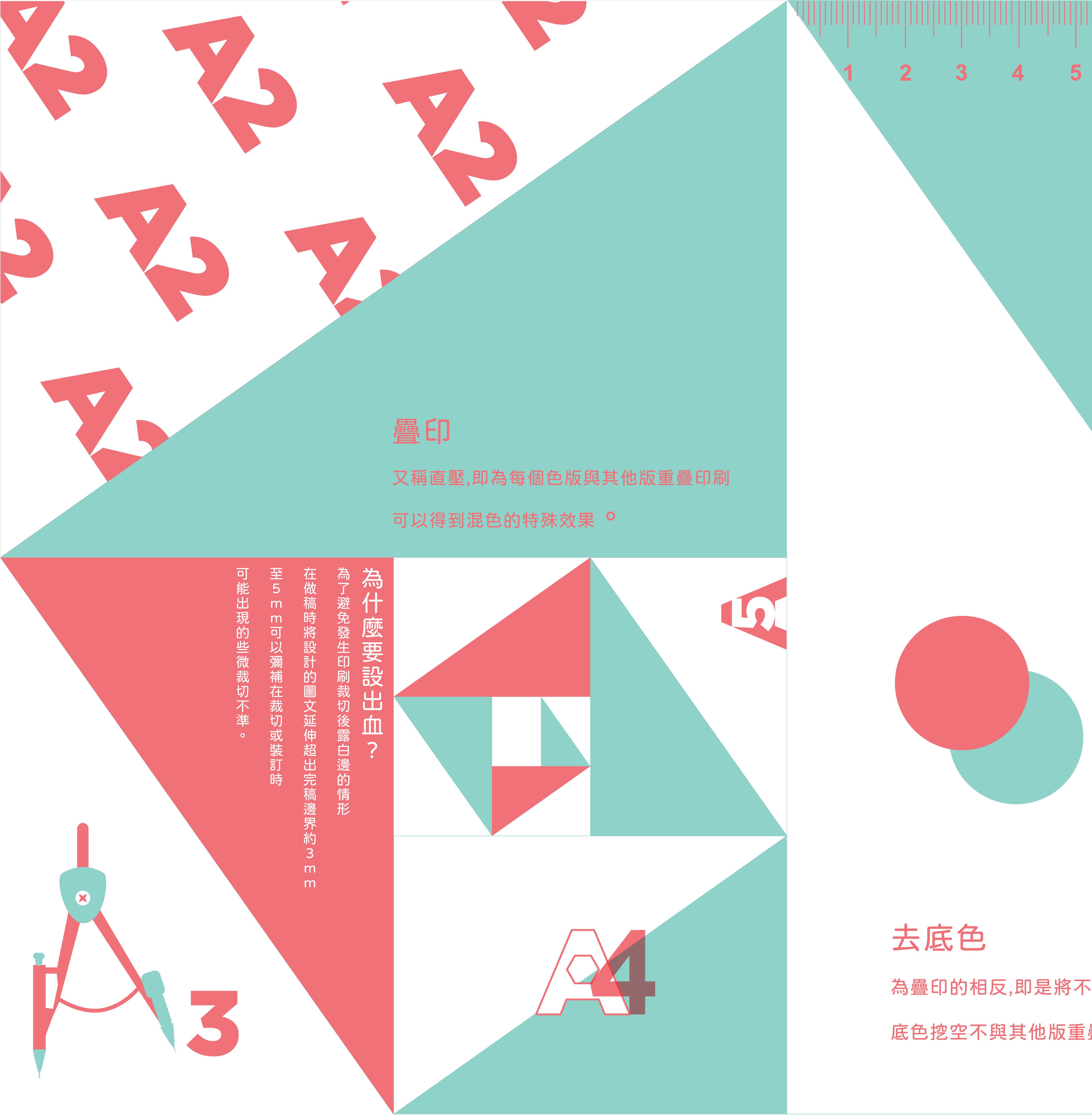創作理念:用會用到的尺規元素去製作, 使用撞色的色彩計畫, 加上印刷的小知識