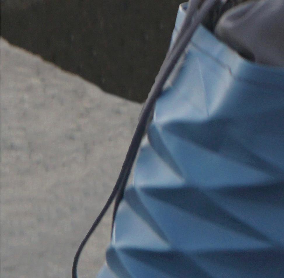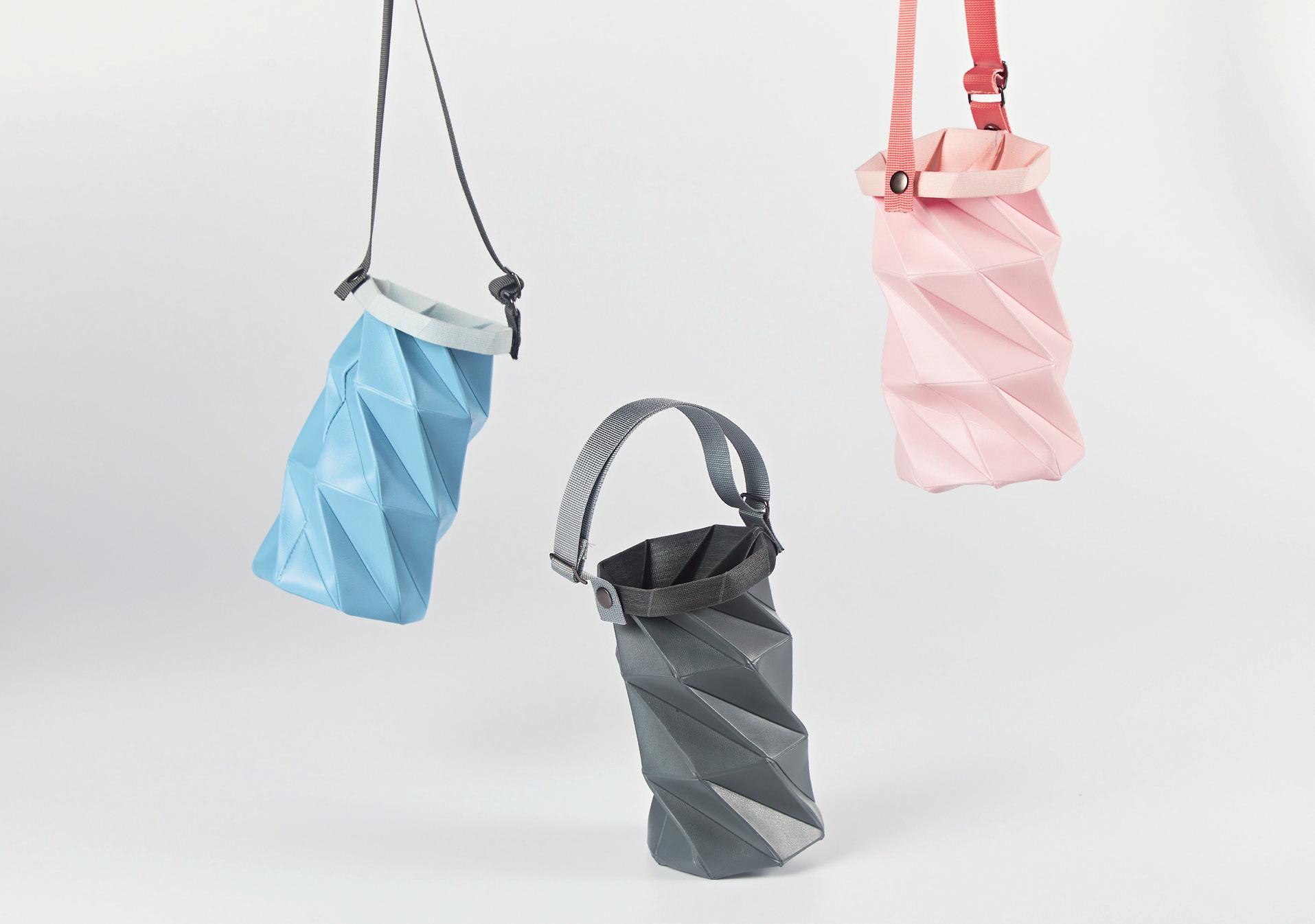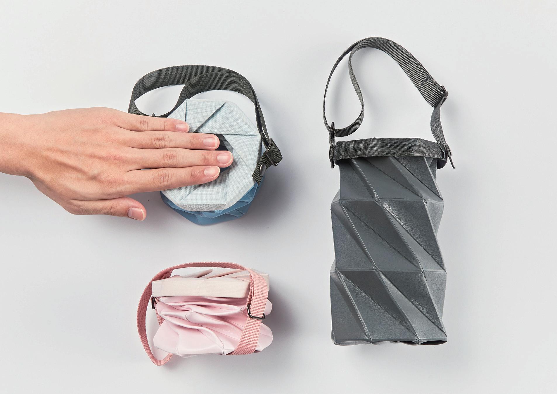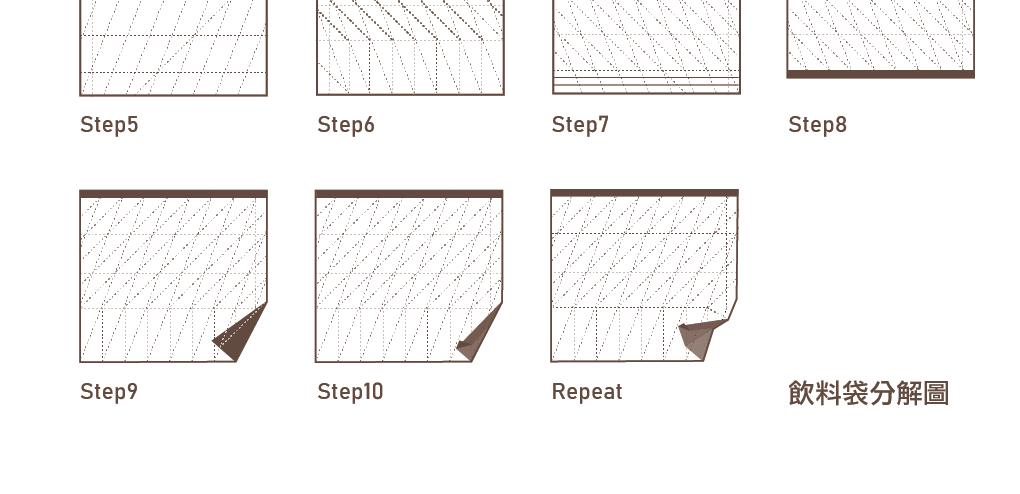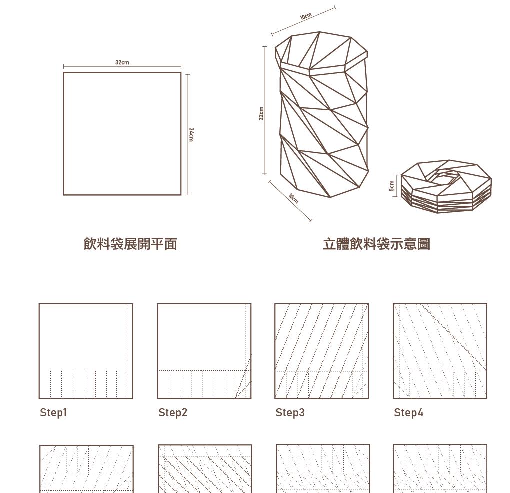 透過平行四邊形與三角形之結構折線,其三角斜度為 67.5度角,容易壓縮扭轉,體積 即能變小,過大或過小皆影響扭轉是否成形。