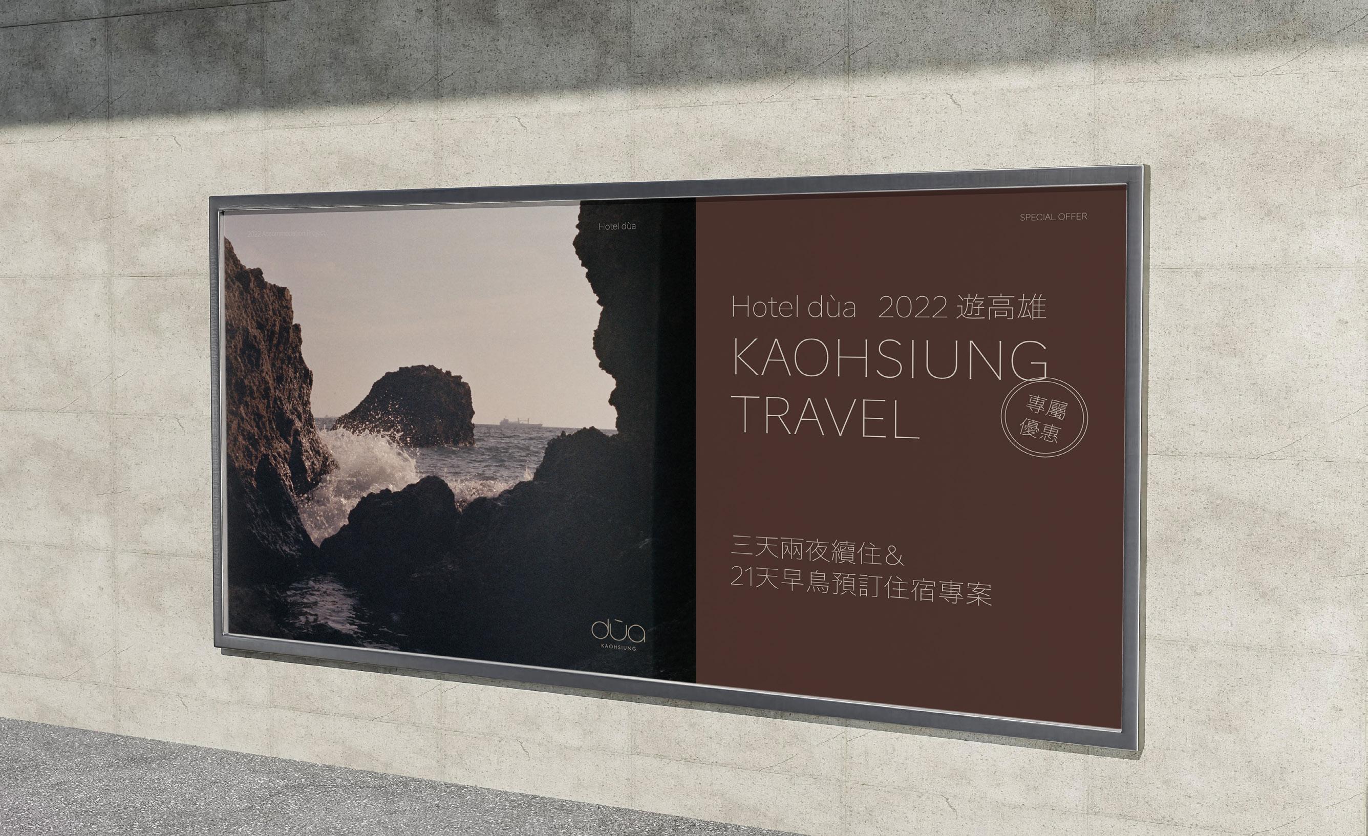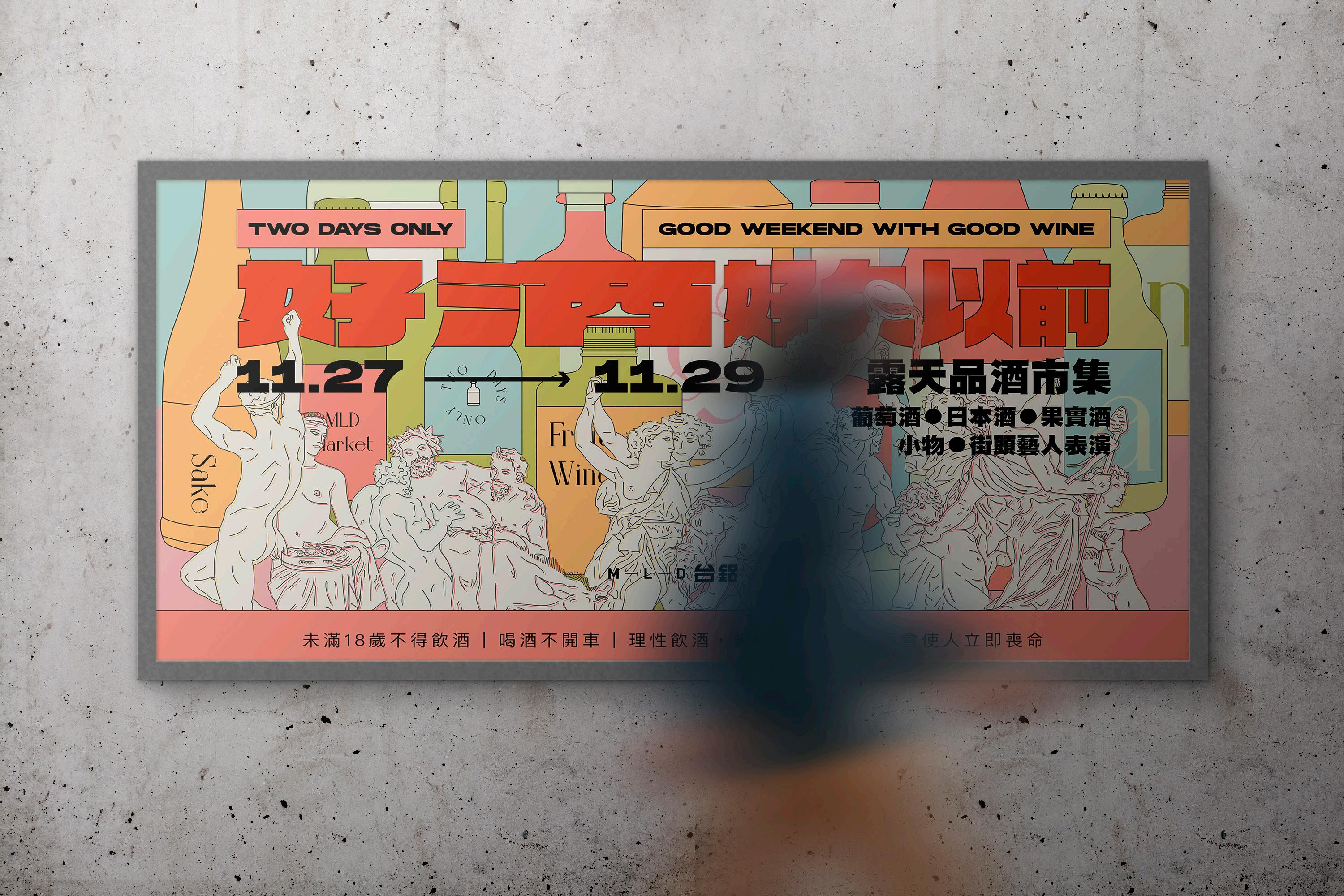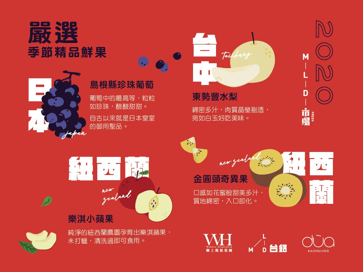 後續任職於都會生活開發,公司旗下有 MLD 台鋁、多個餐飲 品牌與 Hotel dùa ,其中以 MLD 台鋁為主要業務,商場內擁 有自營的書店、宴會廳、餐廳、影城及超市,因此會接觸到各 類型的設計需求,如:節日專案、商品宣傳、包裝設計、主題 市集、菜單、場域告示等,以及設計活動視覺與場域佈置。