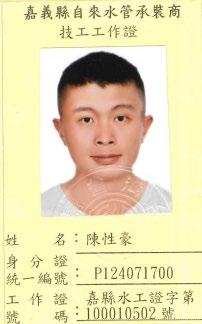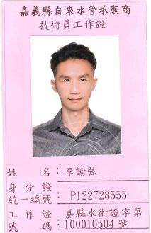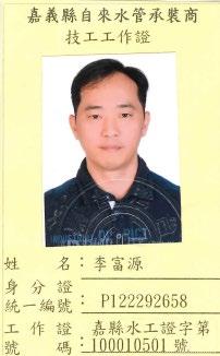 領班資歷16年 公共工程作業 各種水電系統 自來水承裝技工.高空作業車(112)新法規 經濟部自來水事業技術人員.營造業丙業主管 組長 林峰安