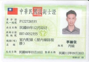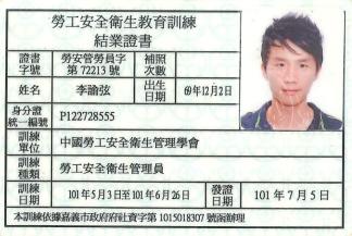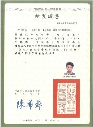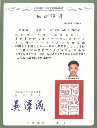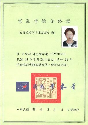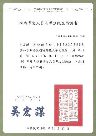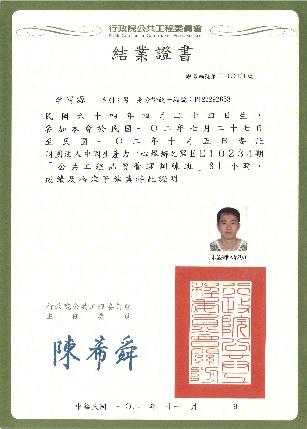 1 (86)省政府甲種電匠/乙種電匠考驗合格 (106)行政院工程委員會採購專業人員訓練及格
