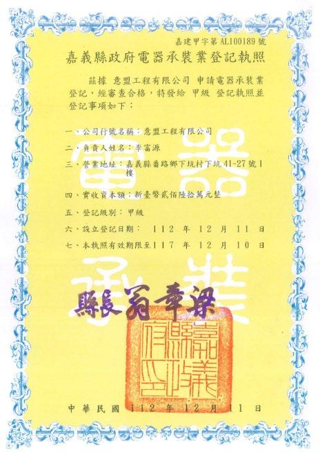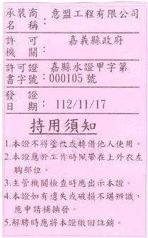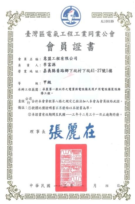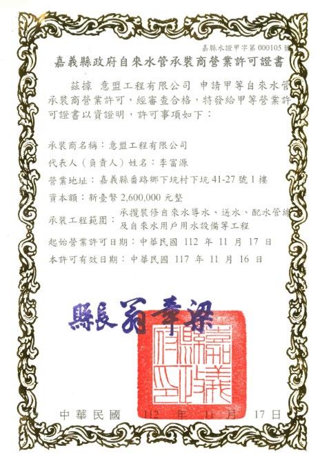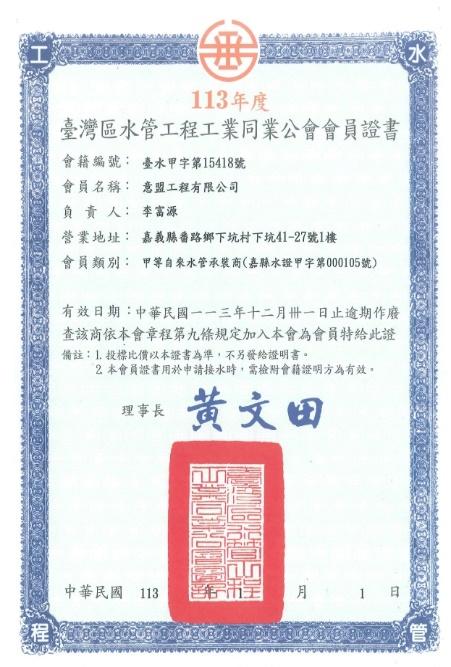 甲等自來水管承裝商證書 甲等自來水管承裝商會員證 甲級電器承裝業會員證書