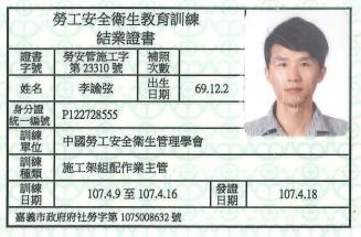 6 (107)施工架組配作業主管結業 (109~111)名洋水電-勤誠科技廠房新建工程