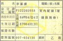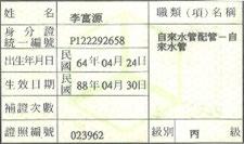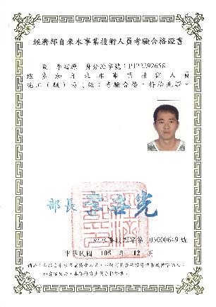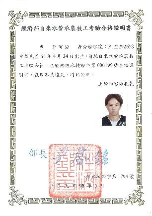 甲種電匠考驗合格證 自來水事業技術人員 (合格證書)