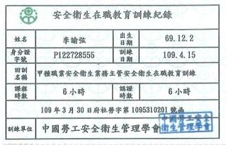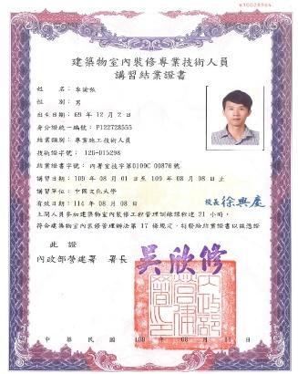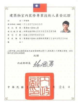109(內政部)室內裝修專業施工技術人員結業 (110~)意盟工程有限公司-專案副理
