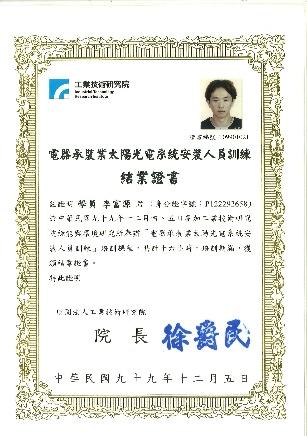 9 (99)工研院電器承裝業太陽光電系統安裝結業 (103~112)協邑水電-專案工程顧問