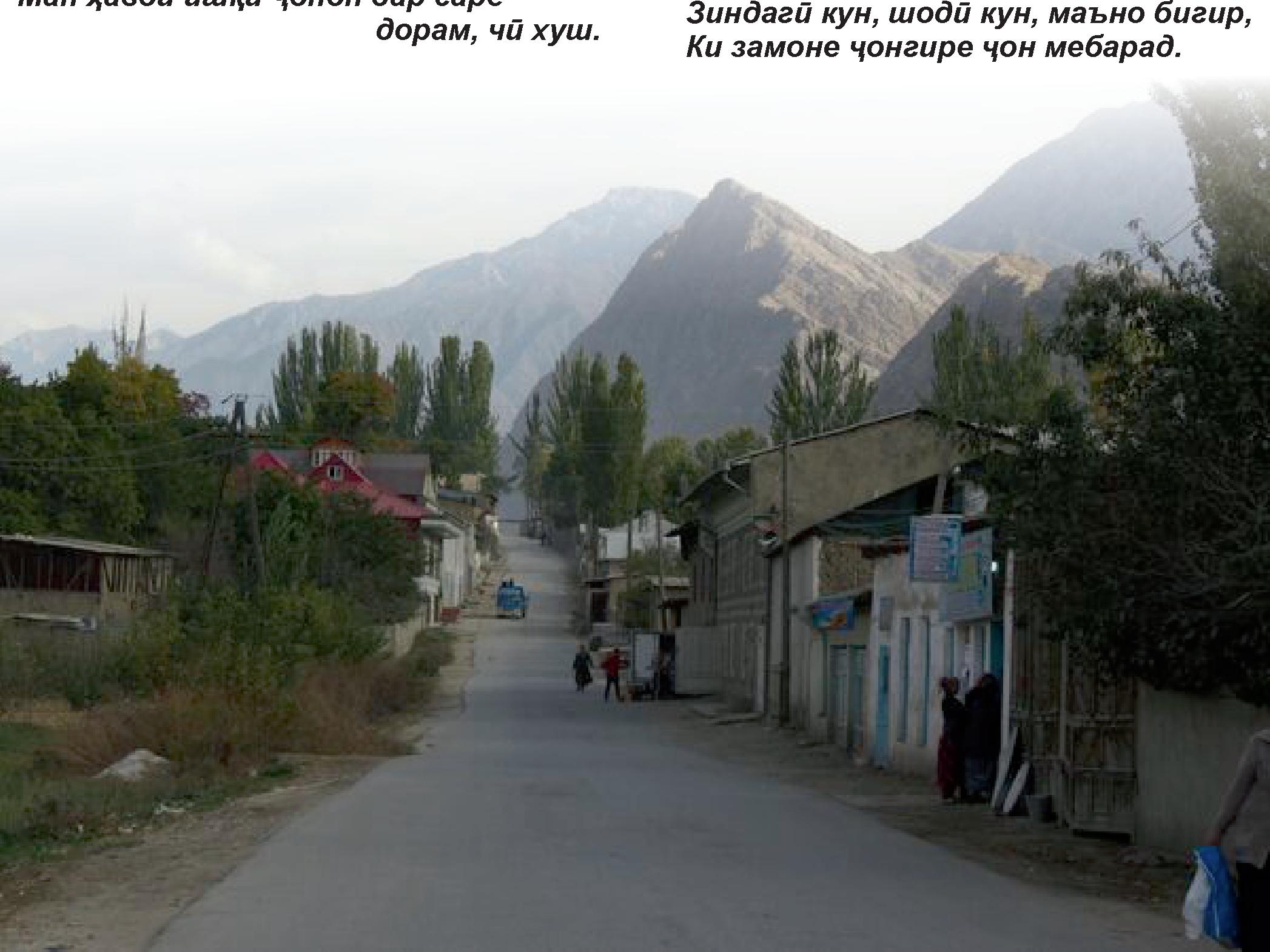 Менагардӣ ҳеҷ гаҳ аз пушти ком, Суди безаҳмат туро бошад ҳаром. З-ин сабаб байни ҳама хурду бузург, Бас азиз астию соҳибэҳтиром.