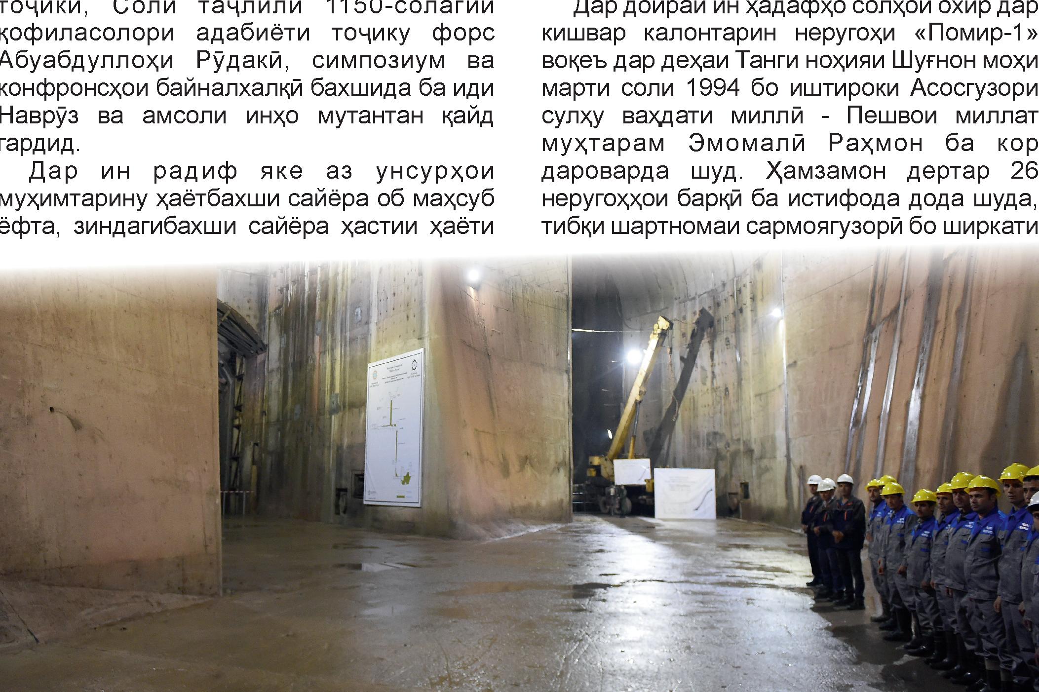 иқдоми созандаи Пешвои миллатамон мебошад ва сохтмон дар ин иншооти аср бомаромҷараёндорад.Сарваридавлатба ин иншооти аср мунтазам сафар мекунанд ва аз раванди бунёдкориҳо аз наздик ошно мегарданд, ки аз ҳаётиву муҳим будани он барои рушди пешрафти кишвар шаҳодат медиҳад.