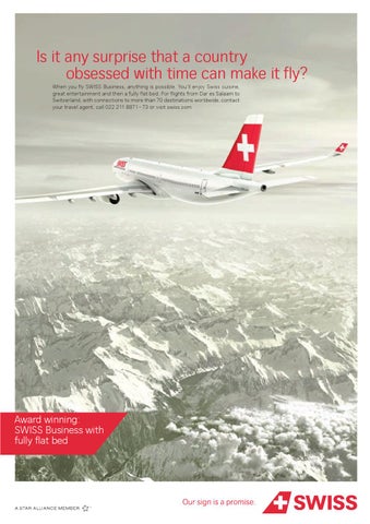 Is it any surprise that a country obsessed with time can make it y? When you y SWISS Business, anything is possible. You’ll enjoy Swiss cuisine, great entertainment and then a fully at bed. For ights from Dar es Salaam to Switzerland, with connections to more than 70 destinations worldwide, contact your travel agent, call 022 211 8871 – 73 or visit swiss.com