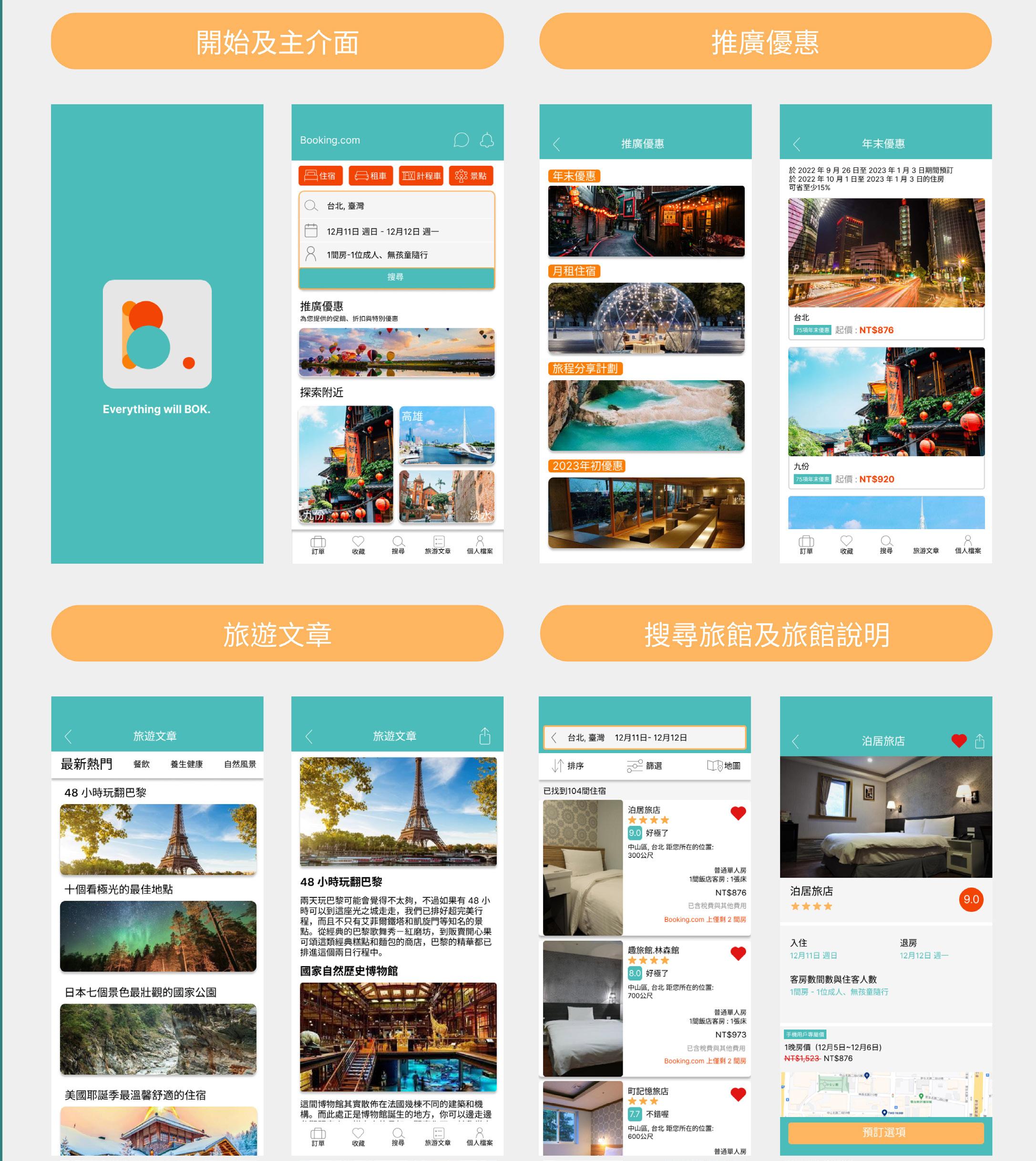 以BOOKING.COM作基礎的APP,目標是改善BOOKING.COM APP的使用者體驗,在配色、介面及LOGO重新作規劃的作品。