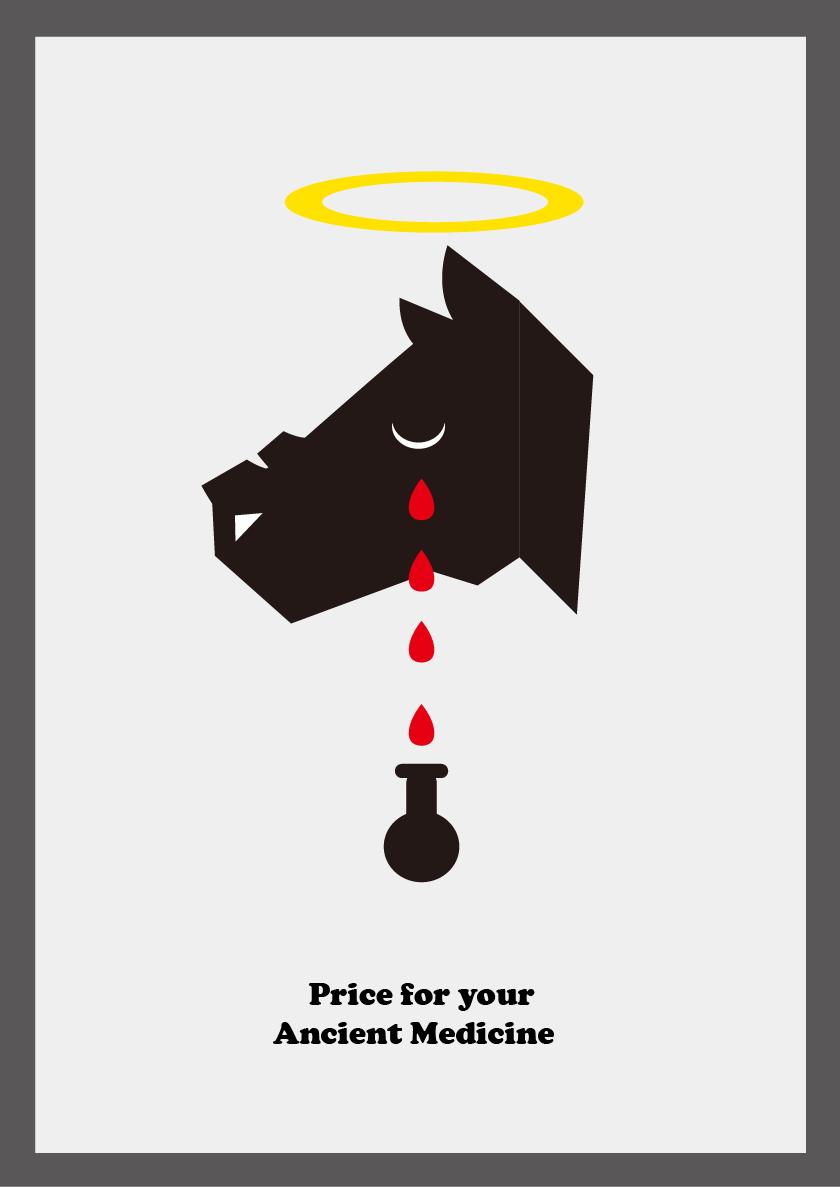 呼籲停止捕獵犀牛的海報。犀牛角及犀牛皮一直以來都被當作 名貴的中藥材,因此許多的盜獵者都以殘忍的方式取得犀牛角。