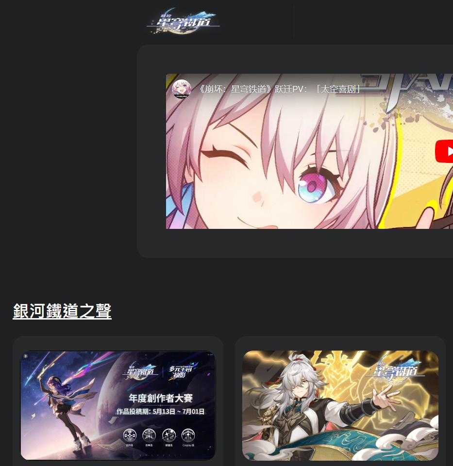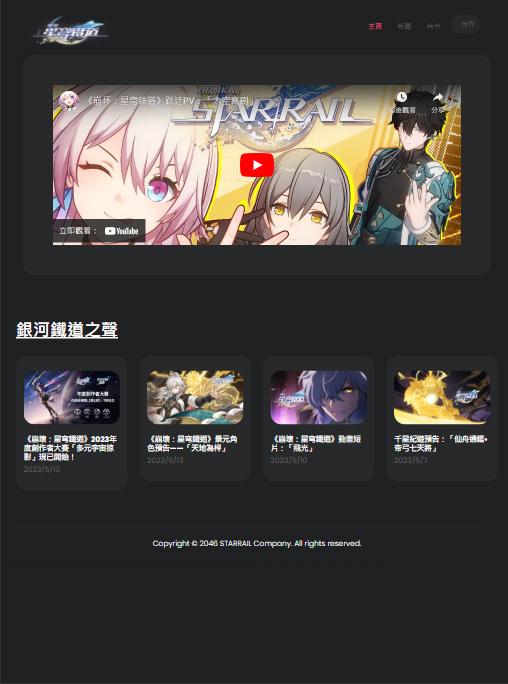 熱門手遊崩壞:星穹鐵道的官方網站並不支援平版、手機閱覽。 因此喜歡這款遊戲的我希 望能讓更多人了解遊戲,嘗試做出了RWD網頁版的星穹鐵道網頁。