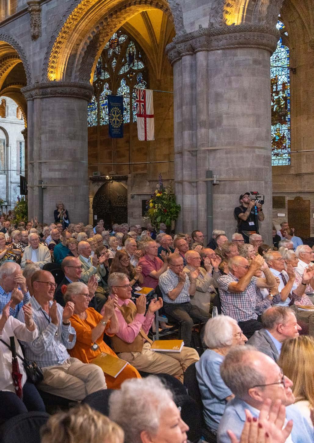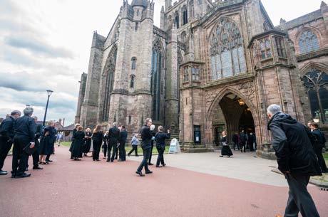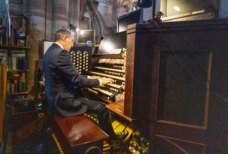 Tuesday 28th: Wulstan Atkins Lecture (of course!) and a day of questions. Who would have thought that some eighteenthcentury TCF musicians arrived by water, as Martin Perkins has discovered? How could Olivier Latry pedal so fast and create such a magnificent improvisation on Thine Be the Glory without prior warning? By what fluke did Juliaʼs passing comment enable her to make contact with me after nineteen years (her father Lindsay Lafford was assistant to Percy Hull)? What has happened to the wall paintings in the Black Lion (where I had lunch with my closest TCF friends courtesy of longstanding TCF aficionado Roger Thorn who sadly died last year) which line the room in which the three cathedralsʼ lay clerks sang in the seventeenth century when Hereford Cathedral owned the ̒hostellrieʼ? When was the Chained Library (Membersʼ Outing) completed, and who knew royalty and city officials would enjoy Alexanderʼs Feast (which they certainly appeared to do)?