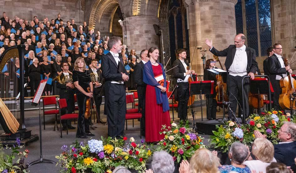 This yearʼs Three Choirs Festival in Hereford was a truly joyful one, with a wonderful audience atmosphere and a stirring programme to match. Over eight days Hereford city came alive with worldclass music making, featuring the renowned Philharmonia Orchestra, the brilliant Festival Chorus, and wonderful guest artists including Roderick Williams, Elizabeth Watts, The Kings Singers, and an array of music from the next generation including the National Youth Choir, National Youth String Orchestra, and the National Youth Orchestra of Wales, creating an inspirational experience for all who attended. The festivalʼs atmosphere was a real highlight, with the festival village and bandstand providing a lively hub