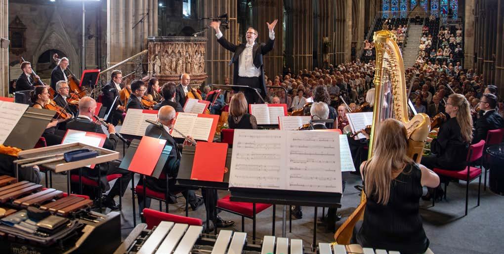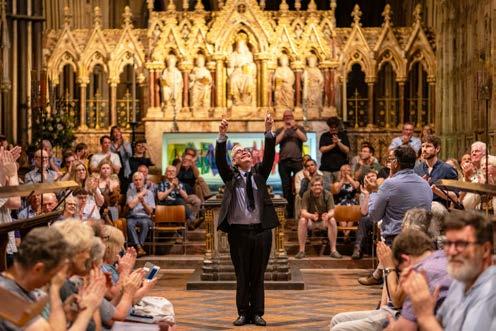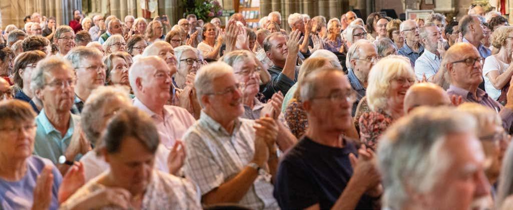 closing or finding themselves in dire straits. TCF is in the same boat, but thankfully a lot more robust, thanks to a cushion of legacies and reserves. Recovery has been slow –audiences were much slower to return than anyone expected, and fundraising was cut from all traditional sources. Coupled with this, since I began in 2016 some of the key costs for our flagship activity (choral music in cathedrals) have doubled (in once case nearly tripled), and we can’t increase ticket prices to keep pace with that. I know that it’s hard to look out over a packed cathedral and believe that that particular event is losing money, but it’s true. The costs of rehearsing a chorus, bolstering with lay clerks, bringing in a top-flight orchestra and soloists and then hiring a cathedral that we effectively convert into concert-hall-range staging, seating and lighting, is huge. There are fluctuations of course – each cathedral has a different capacity, the calibre of soloists or choice of repertoire can make a huge difference – but each evening concert with chorus and orchestra requires thousands of pounds of donated income to break even. Think back, for example, to that absolutely packed Dream of Gerontius in 2017. That was before a lot of prices were hiked, and it’s the largest capacity/highest yield space. Yet to be just cost-neutral to stage, it would have needed around £40,000 of sponsorship behind it. Seven years on, the infrastructure costs alone (cathedral hire, staging, lighting, seating) will have added a couple of thousand to that on every single festival night. That’s one of the reasons we’ve been experimenting with formats and smaller scale works – they tend to need less support to break even – and why I’ve put a lot of effort into building up the daytime and non-cathedral programmes. They attract a much better audience now, and help to contribute to some of the core costs of running the organisation. These brilliantbut-expensive events must, of course, always be at the heart of the festival, but fundraising