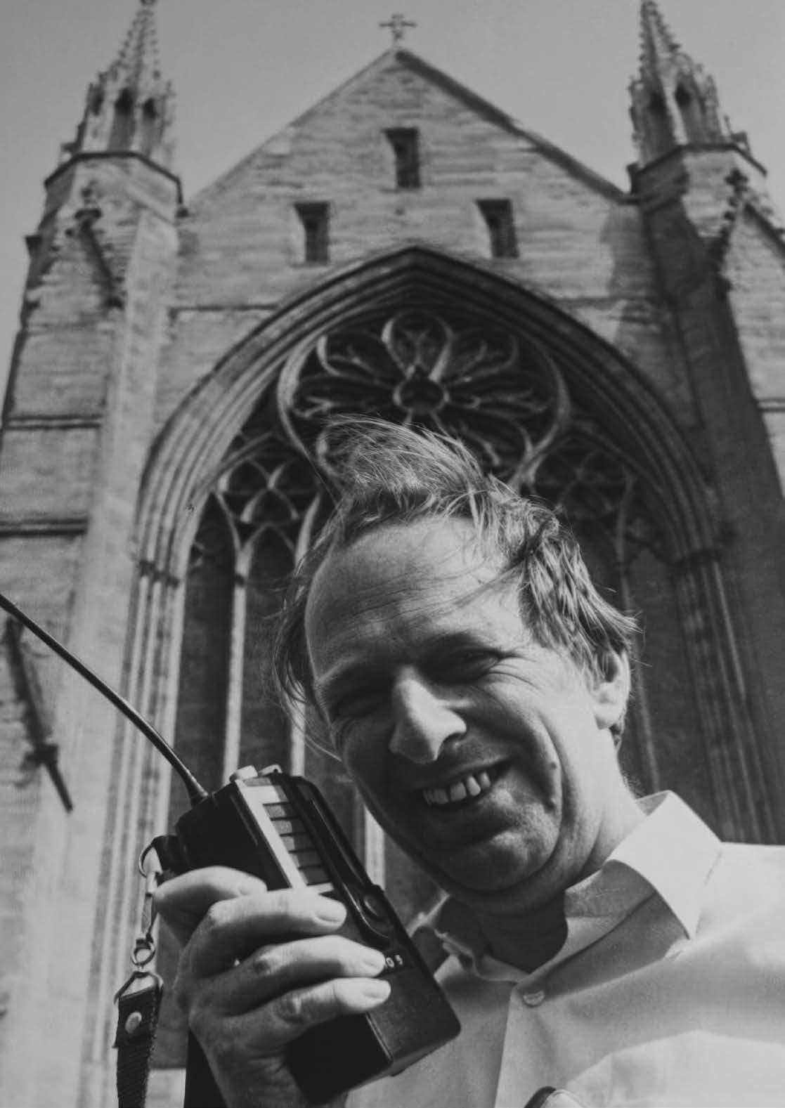 Dad loved all the rushing about, chaos and problem solving of festival week. I remember having a go with his walkie talkie – incredibly exciting in the days before mobile phones – and it worked all the way to All Saints’ Church! He was less keen on having to do the rushing about in what he called his ‘penguin suit’ –compulsory dress for festival staff back then. He looked very distinguished though.