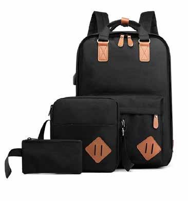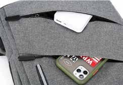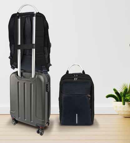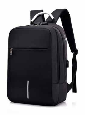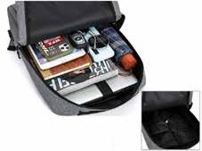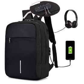 l Salida lateral para usb y para audífonos Doble compartimento principal. Resistente al agua. Amplio compartimento al frente. Candado de seguridad Sistema trolley sleeve. Correas ajustables y acojinadas.