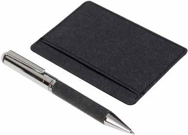 Bolígrafo metálic con grip en PU reciclado Portatarjetero con 4 compartimentos Caja de presentación