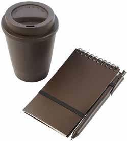 Incluye: Vaso con tapa para café, block de notas con argollas y bolígrafo