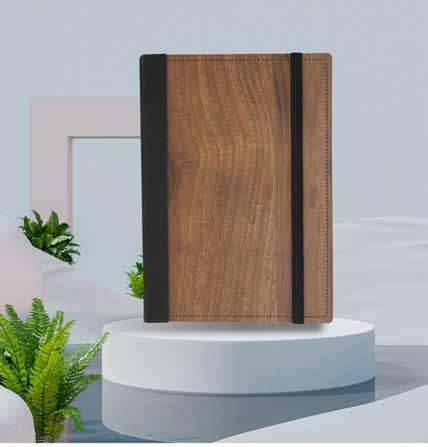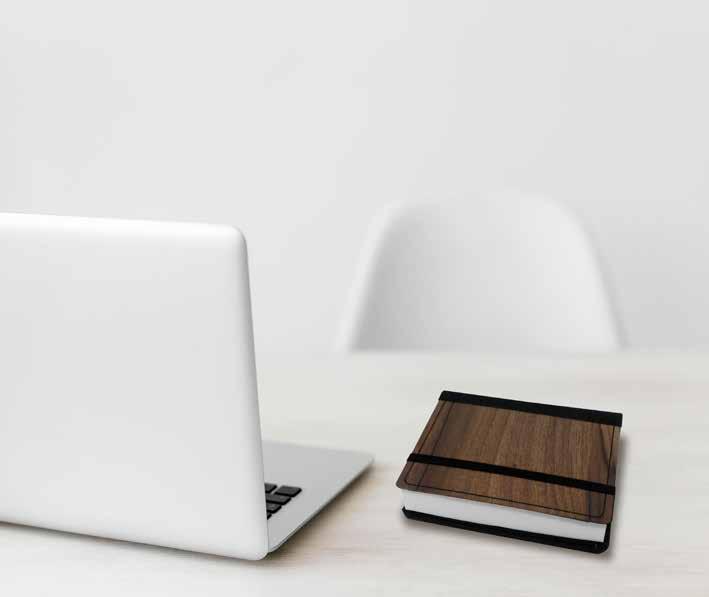 l Detalle de bamboo en pestaña de cierre Sistema para stand móvil y porta bolígrafo. Cinta divisoria Aprox. 80 hojas rayadas