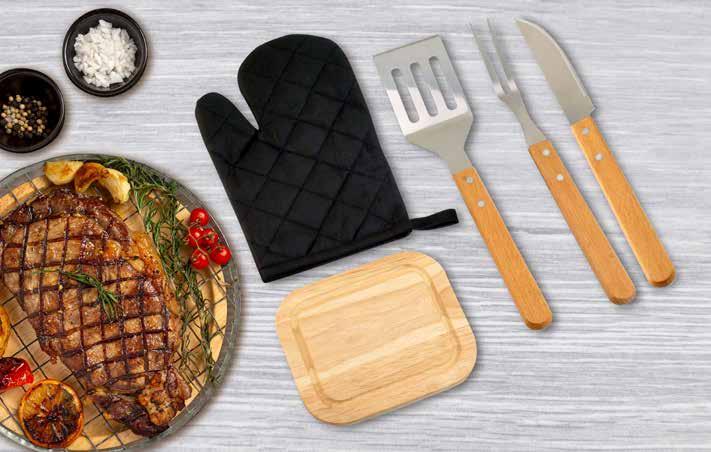 l Estuche con ziper y asas. Incluye trinche, cuchillo, espátula, tabla pequeña para picar y guante.