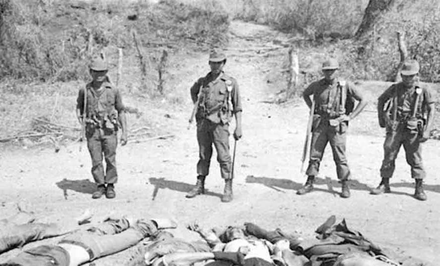 EL SALVADOR. El Mozote. 1981. Una parte integral de la estrategia de contrainsurgencia del ejército salvadoreño implicaba “drenar el mar “ o “secar el océano”, es, eliminar la insurgencia erradicando su base de apoyo en el campo. El objetivo principal era la población civil –desplazarlos o matarlos para eliminar cualquier posible base de apoyo para los rebeldes.