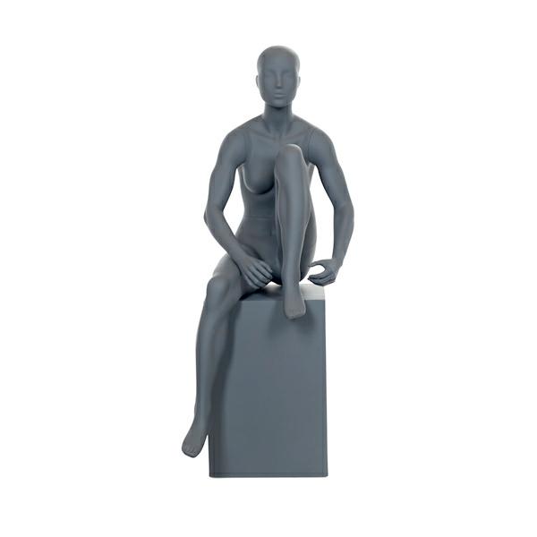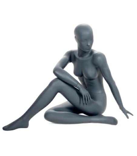 Skyltdockamanimörkgråmattfinishglasfiber. Sittande.