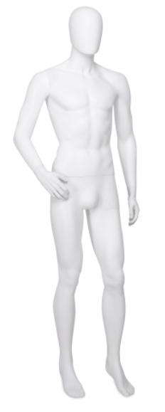 Skyltdockaivitmattfinishglasfiber. Fotplattamedföljerochstagförvad. StorlekEUsize48-50. Höjd:1900mm