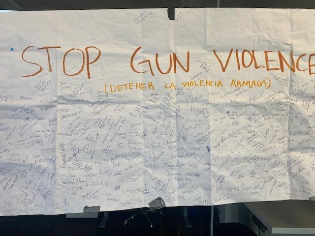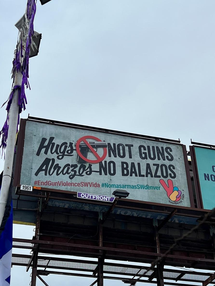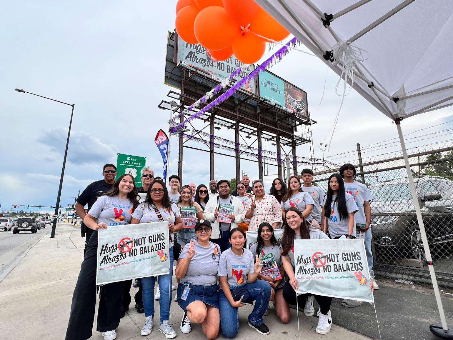 Nuestro nuevo cartel fue revelado el 8 de junio en la intersección de 8th y Federal. Posicionado para visibilidad cuando se conduce hacia el sur, estuvo en exhibición durante dos meses, de junio a julio. Después de esto, se exhibirá otra cartelera el 4 de septiembre en las avenidas Jewell y Federal. El objetivo principal de estas campañas publicitarias es llamar la atención sobre la necesidad urgente de cambio en nuestra comunidad y abordar el problema de la violencia armada Elegimos el color naranja como símbolo de la prevención de la violencia armada y, durante el evento de inauguración, presentamos globos, pastelitos y cintas de color naranja para crear conciencia sobre nuestra causa