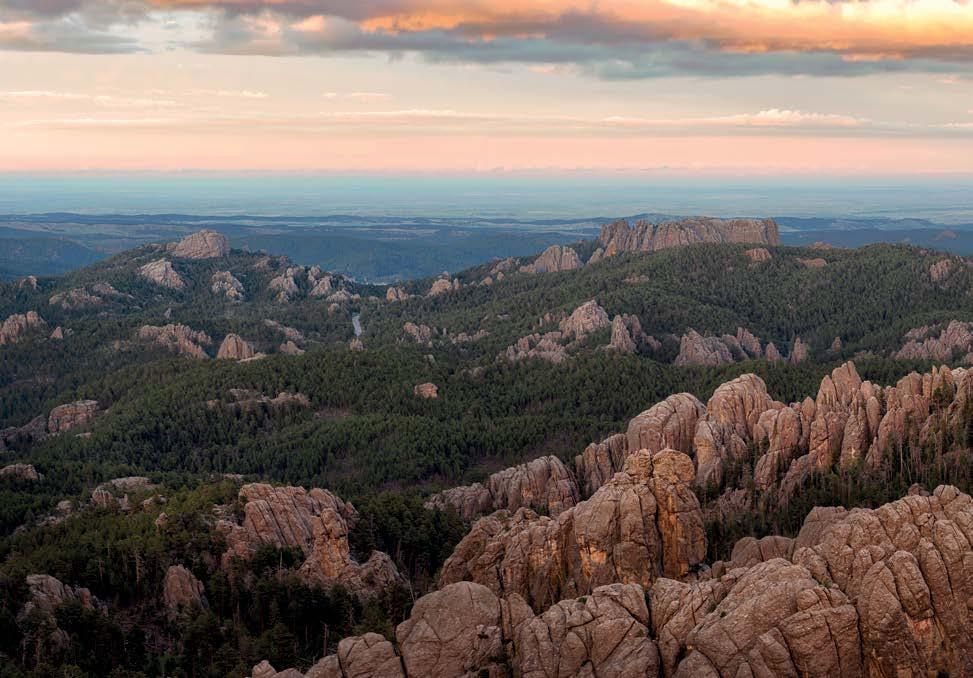 ABOVE Whether you drive Needles Highway or hike Cathedral Spires Trail, don't miss out on one of the most stunning views in Custer State Park. The geological formations here are so unique, Cathedral Spires was designated a National Natural Landmark in 1976.