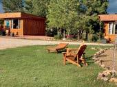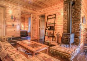 Six log cabins with full kitchens, claw foot tubs or rock-surround showers, gas fireplaces/ BBQs & decks with views. Open year-round.