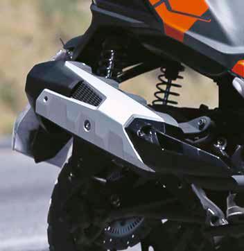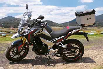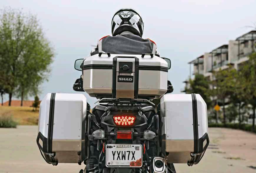 Top Case de fábrica, frenos de disco, largas suspensiones invertidas delanteras, protecciones tubulares para la carrocería con luces auxiliares, Skid Plate, parabrisas, puerto USB, alarma con control remonto y arranque a distancia, entre otras cosas.