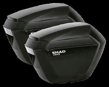 Las maletas laterales SH23 destacan por su elegancia, ligereza y funcionalidad. Cuentan con una gran aerodinámica y conservan su impermeabilidad y resistencia. Toda la capacidad de volumen es aprovechable (23 Litros) y la apertura en la parte superior permite al motorista acceder a la carga sin tener que levantarse de la moto.