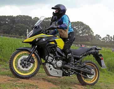 obstáculos. Para mayor desempeño, las V-Strom 1050 DE facilitadas por Suzuki Motos de México, contaban con neumáticos Pirelli Scorpion Rally STR con los cuales se sintió la buena tracción de éstos en suelo lodoso.