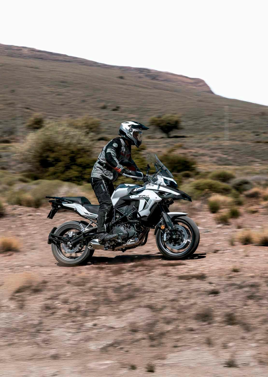 Comenzando por la TRK 602 X, es la evolución natural de la exitosa Benelli TRK 502 que se vendió en todo el mundo con gran aceptación, incluso en México. La nueva versión cuenta con un bicilíndrico que ha crecido hasta los 554 cc, para ofrecer una potencia de 47 hp, además de integrar importantes novedades como la pantalla TFT, quick-shifter bidireccional, puños calefactables y control de presión de neumáticos.