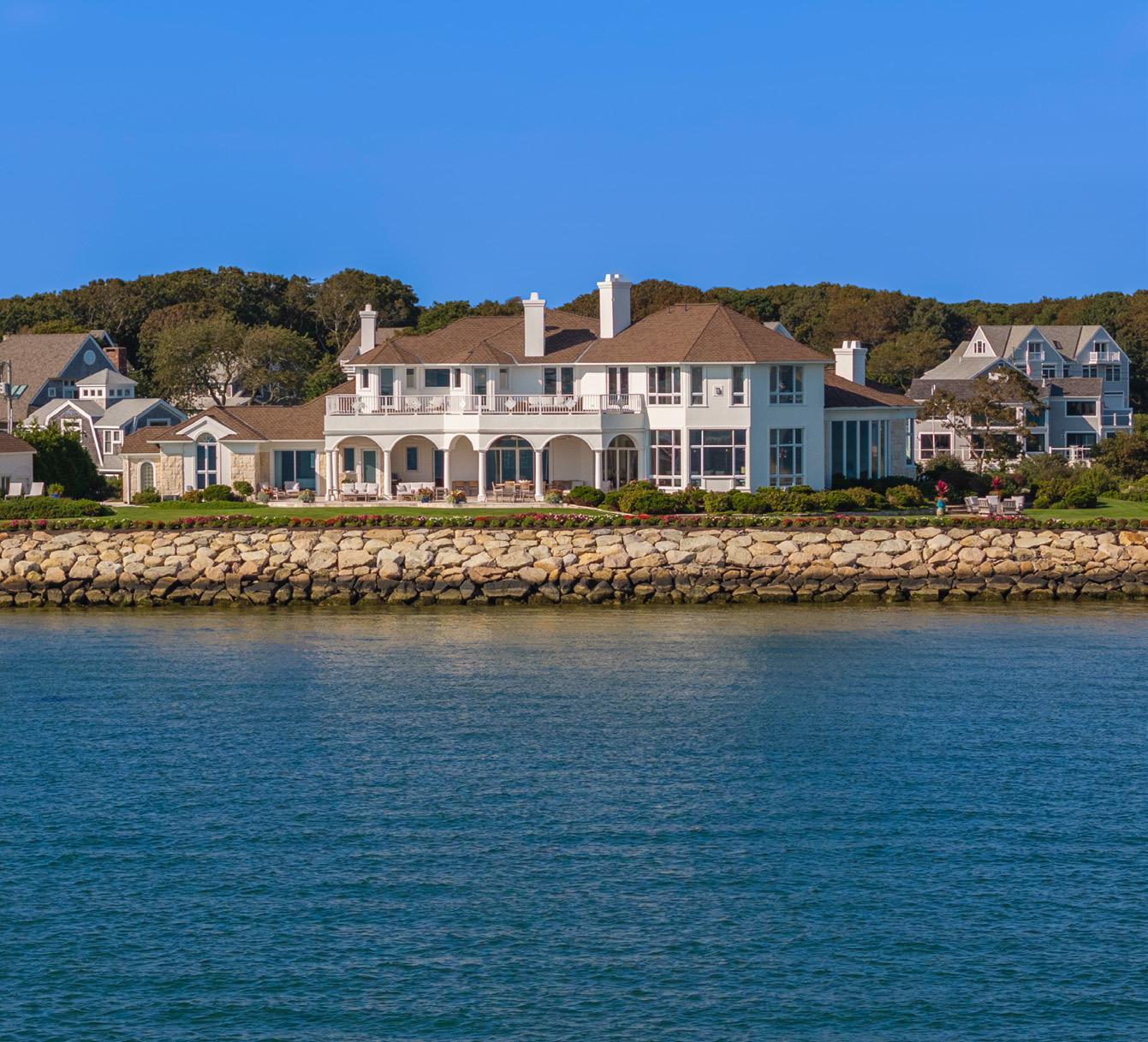 Outstanding five-bedroom waterfront residence and two-bedroom guest house in the private community of Oyster Harbors.