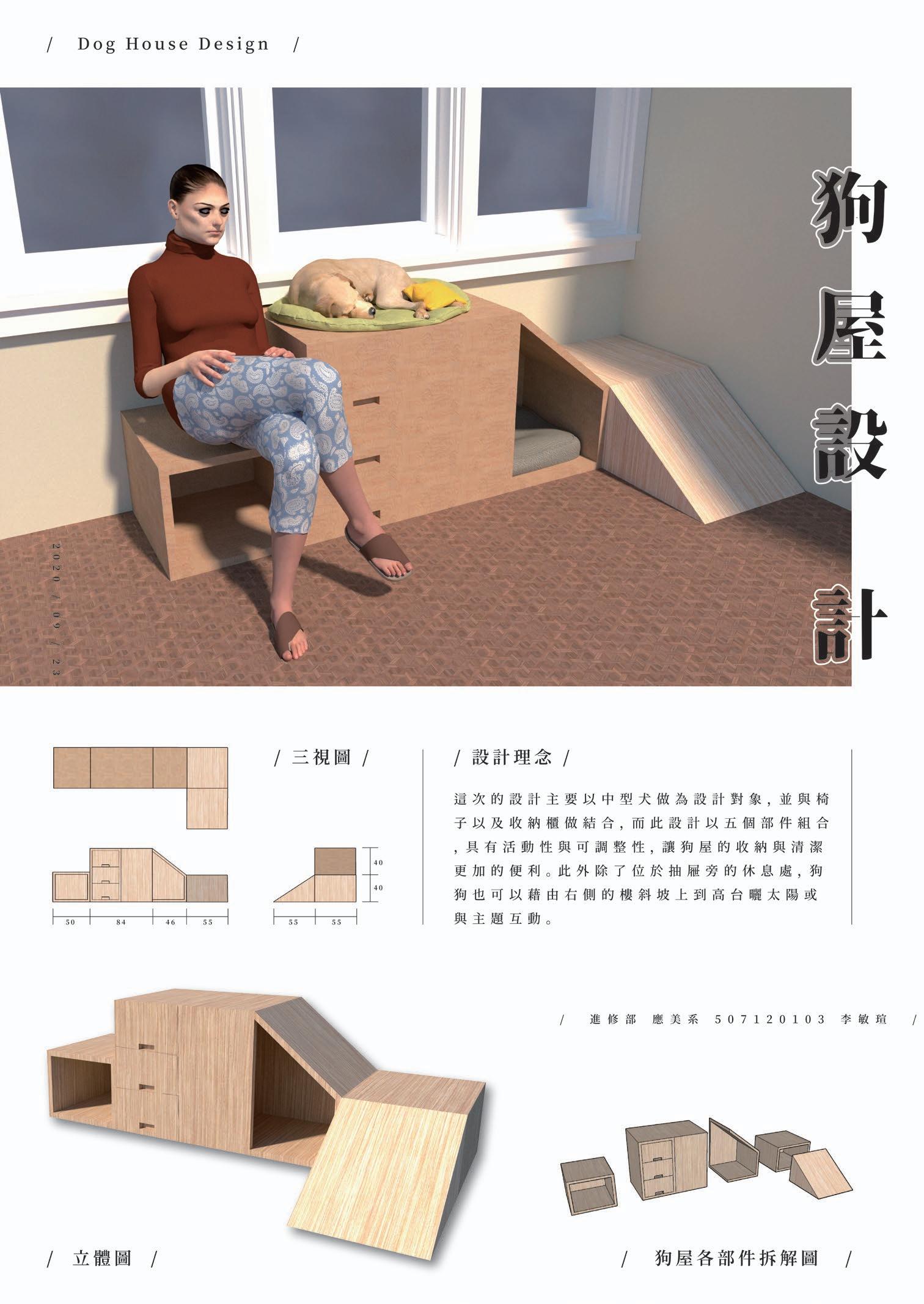 狗屋設計 寵物的交集更多,此外為避免寵物關節磨損,使用了防滑鋪面的緩坡。結合了收納、座椅、小窩、日光浴等功能,希望可以藉由組合式的狗屋,讓主人與 設計理念排列組合標準式A組合 B組合 C組合 D組合 室內設計 19