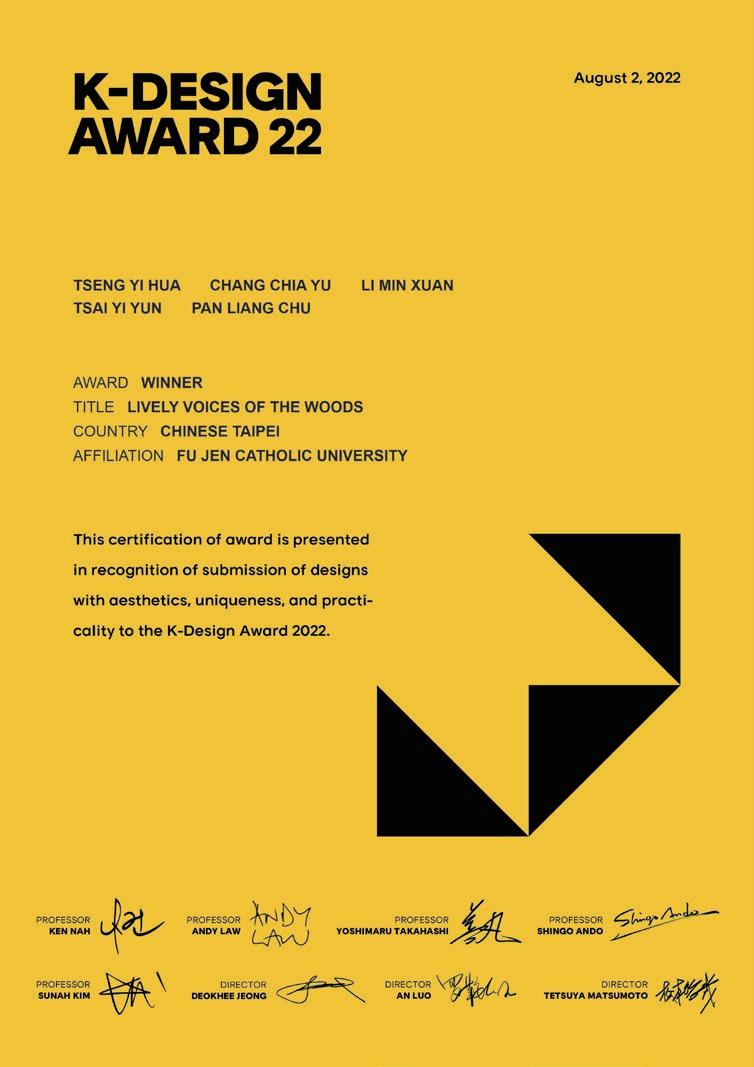 獲獎 2022K-Design韓國設計獎 Winner 2022金點概念設計獎 入圍 2022TTS 視覺設計獎 平面設計類、插畫設計類 入圍+優選