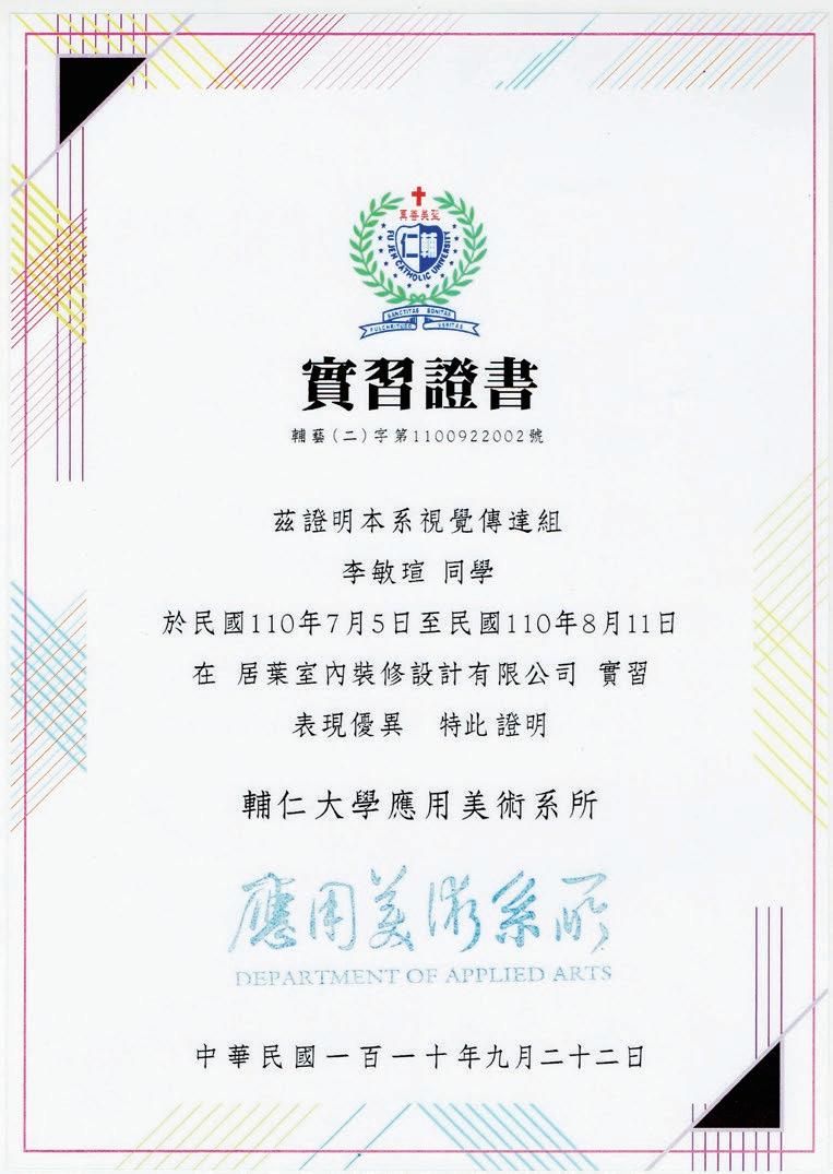 畢業製作實習證書 / 栩栩如森 K-design award Winner 得獎證明