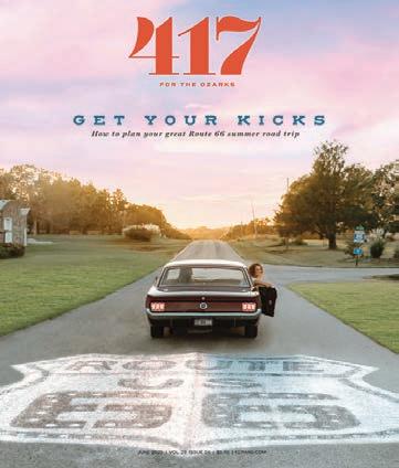 But at this point, after 20 years at 417 Magazine, I’ve lived in Spring eld longer than anywhere else. I know the Ozarks like the back of my hand. I love the work I am lucky enough to do and am grateful for all the people and places I get to learn about, write about and share with you. I don’t know what the next 20 years will hold, but I do know that I’ve traded my beaten-down 1990s van for a high-tech 21st-century mom van—and midlife in the Ozarks is looking pretty darn inviting.