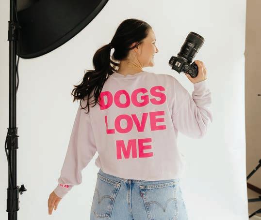 Photographer Hannah DeVries has a talent for capturing the most charming moments with her four-legged clients. Dogs respond to all kinds of sounds and smells, and she has a variety of techniques she uses to get the pups to look her way. When it came to Olive, this issue’s cover model, DeVries relied on a little sensory input. “She loved smelling the treats I had in my hand, which is how I got the iconic ‘boop’ photo,” DeVries says. Olive was a dream to work with from the start, though. Although many Dalmatians are energetic and active, Olive had a calm demeanor and came into the studio as cool as a cucumber. Sometimes, reaching that point can take a little while. “Once a dog feels comfortable with me and the setting, it’s time to play!” says DeVries.